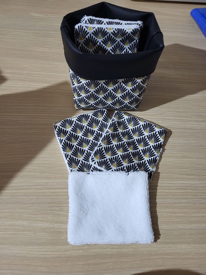 panier avec 7 lingettes en eponge de bambou et tissu oeko texlingett