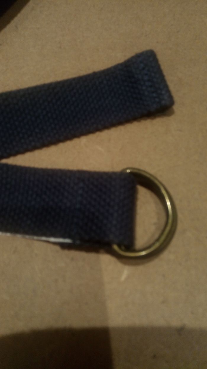 Ceinture toile 100 % coton, couleur encre. Longueur 70 cm et largeur 3 cm. Marque : 3 Suisses. Neuve dans l'emballage d'origine.