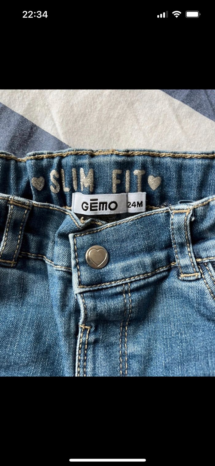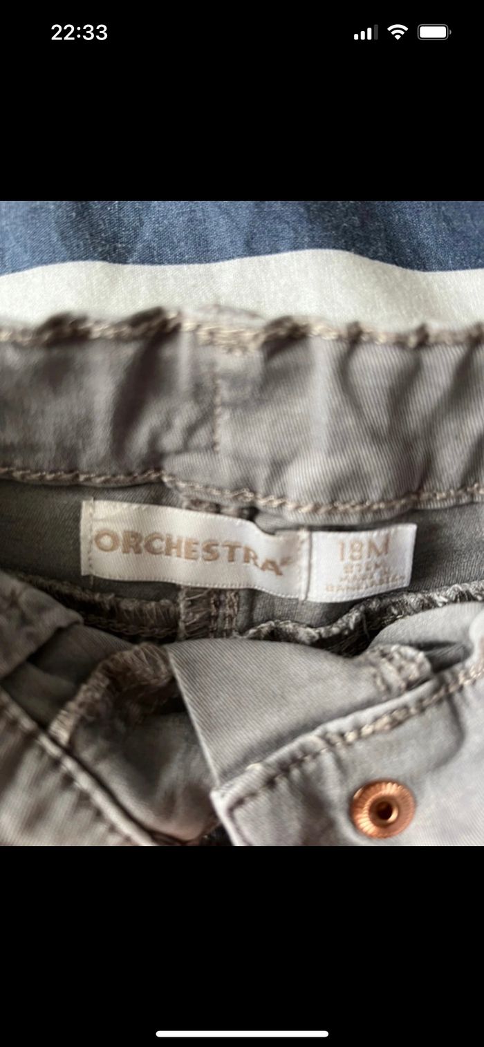 Très bon état Jean : 24 mois mais convient à un 18 mois car taille petit. Marque : GEMO Rose : 18 mois. Marque : TEX Gris : 18 mois. Marque : ORCHESTRA