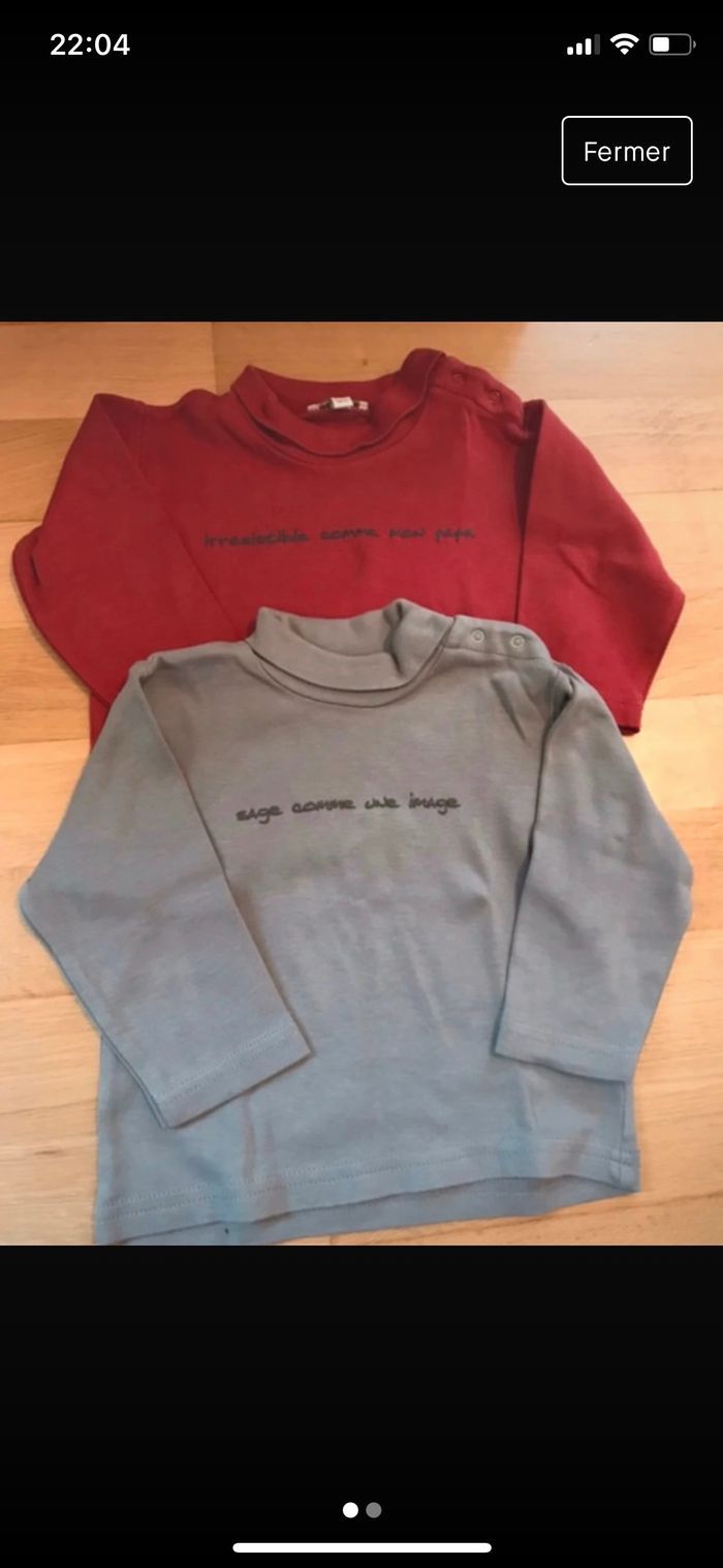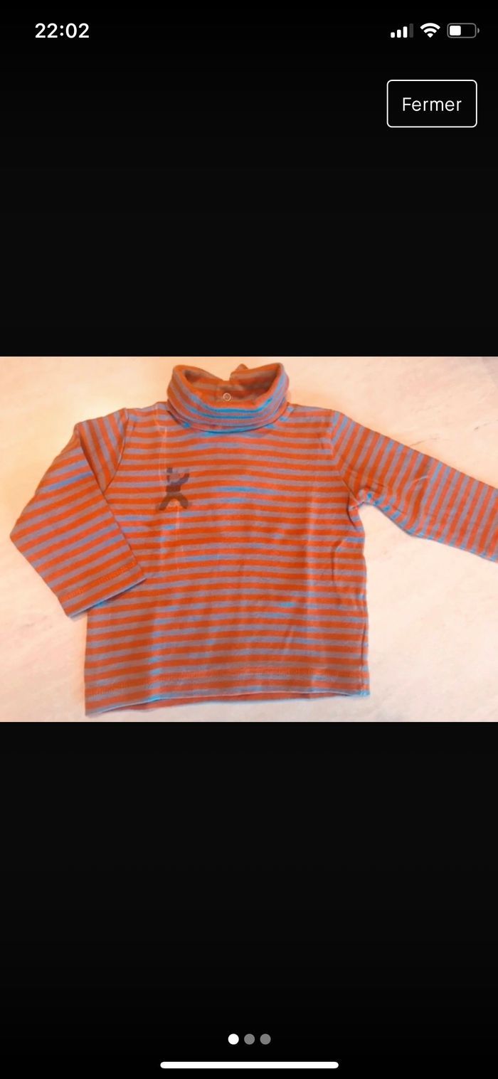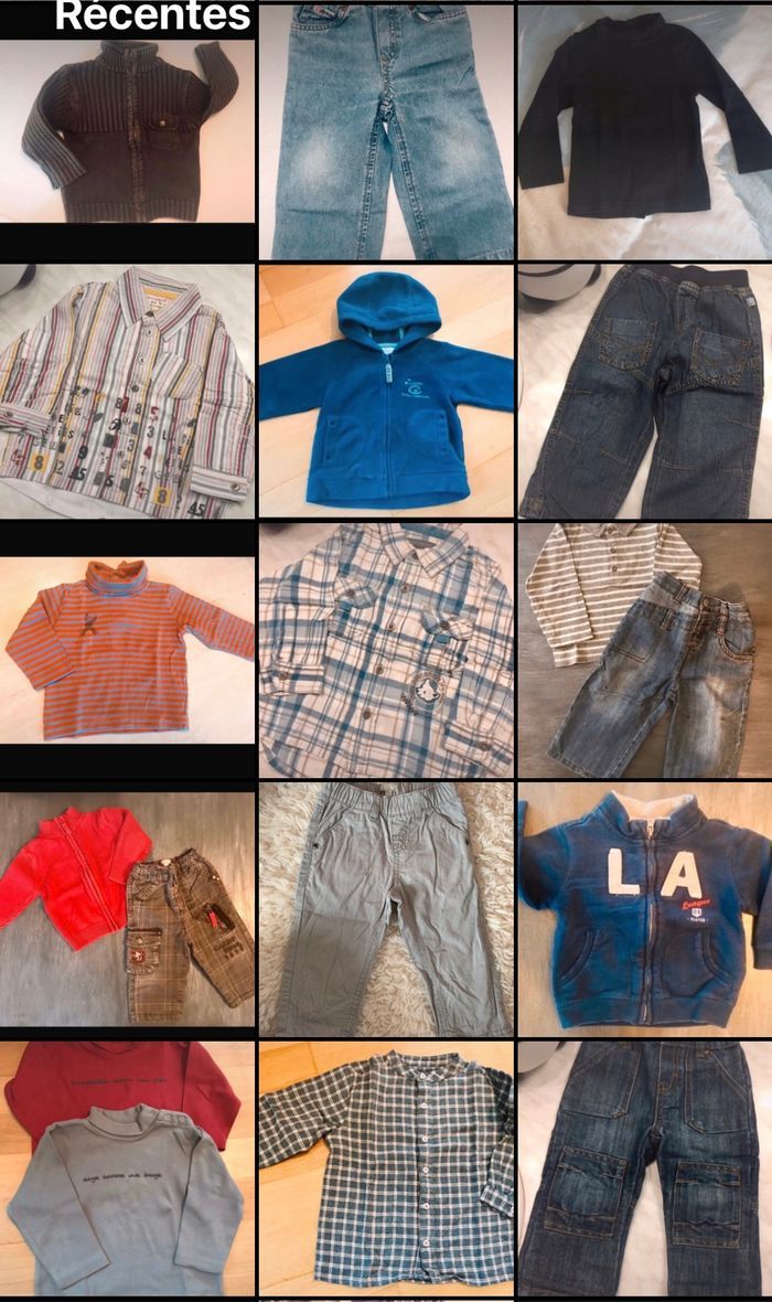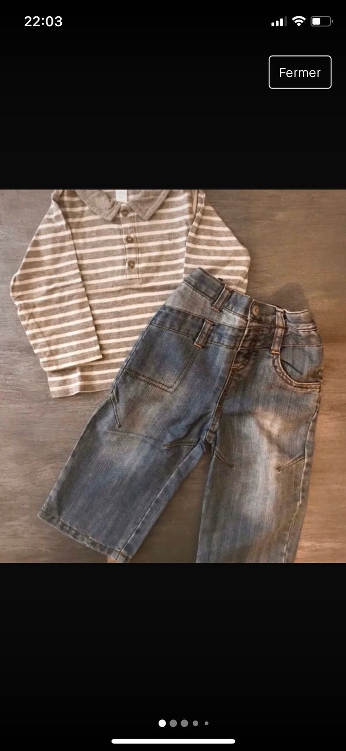 Lot 12 mois garçon hiver composé de 18 pièces : - 4 vestes zippées (zara, DPAM, Tex dont 1 polaire) - 6 pantalons / jeans (dont 1 marque Esprit, Grain de blé, orchestra, 1 jean Okaidi neuf) - 4 t-shirt manches longues cols roulés et 1 t-shirt manches longues (sont petit bateau, kiabi, grain de blé) - 3 chemises épaisses d’hiver. - Les articles vont de bon etat à neufs, sans tache ni trou.