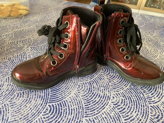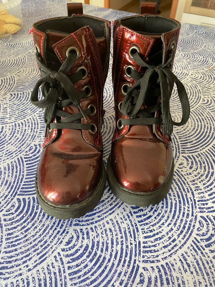 Bottines fille Bordeaux vernis, taille 30, avec lacets et fermeture éclair. En bonne état ( vernis non écaillé)
