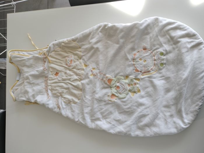 Lot de 3 gigoteuses taille 2 Une qui s'ouvre par le bas Les deux autres ont des pressions derrière pour deux dimensions différentes elles sont en bon état