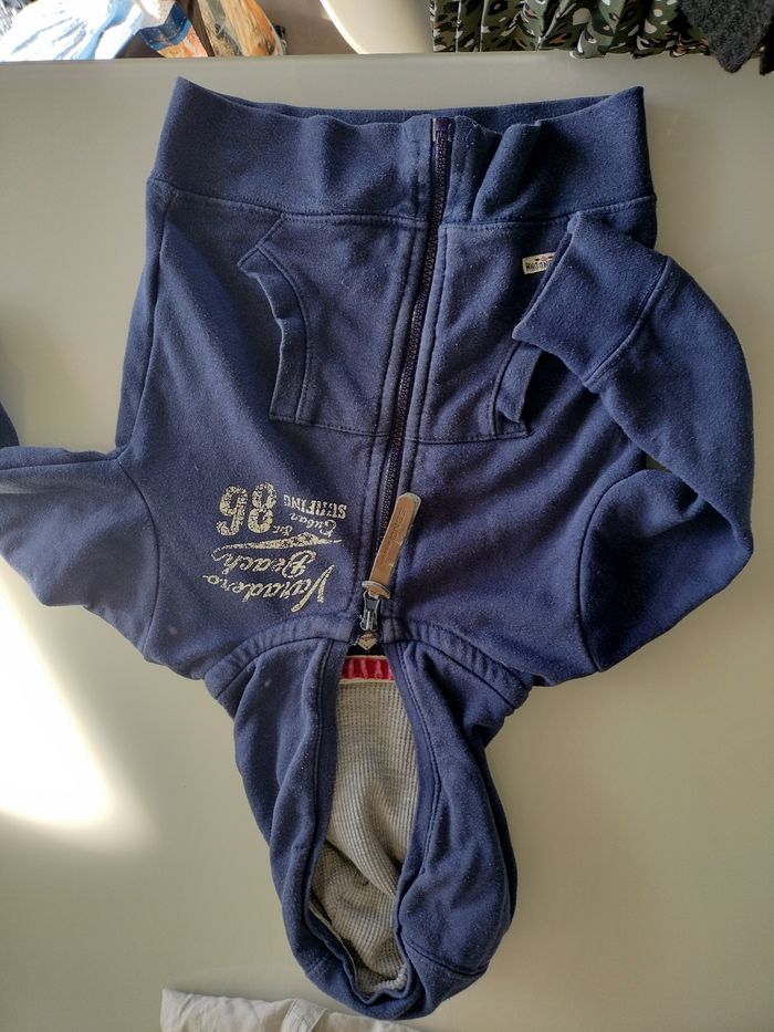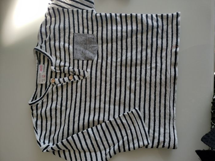 Lot comprenant 2 chemises ( manque une bouton à une ) deux vestes , 4 pulls dont le Mickey qui est très épais et le raillé qui est assez fin. Marques Zara disney