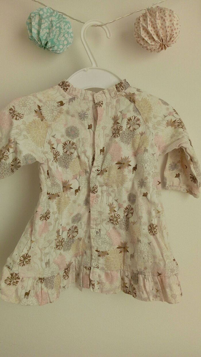 Robe taile 3 mois. Boutons à pression au dos. Marque Coudémail. Très bon état.