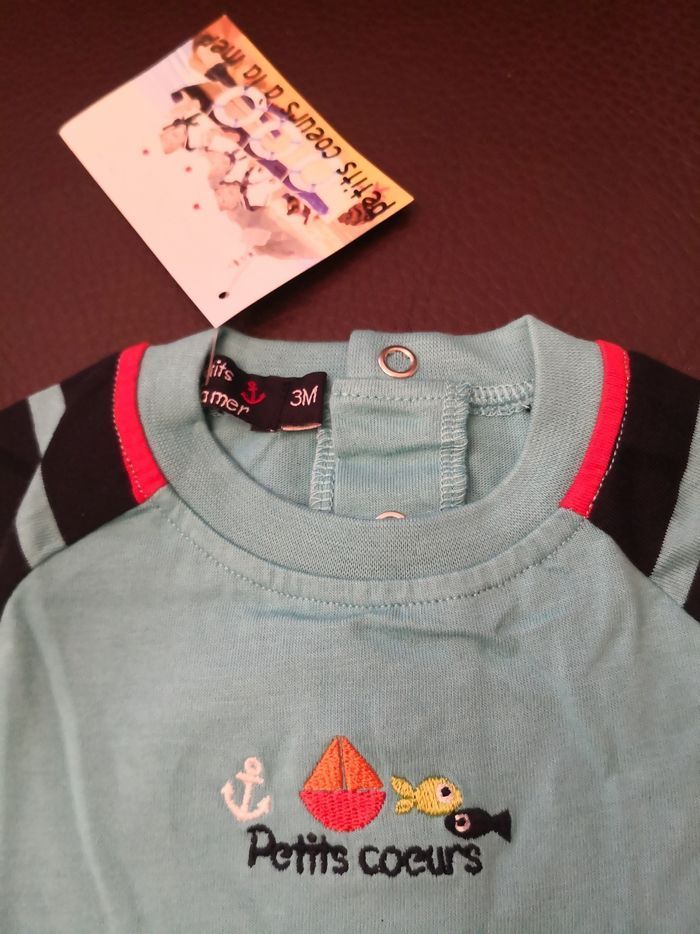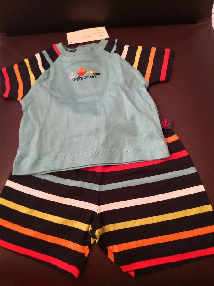 Ensemble short + tee-shirt neuf 3 mois PETITS CŒURS À LA MER ❤️AVIRON5 =5€ de réduction dès 15 € d achat jusqu'au 21 mai cumulable avec mes réduction en fonction du nombre d articles achetés 😁