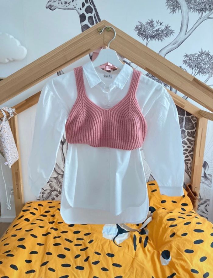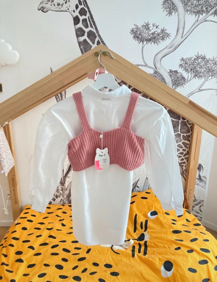 Jolie chemisier avec une petit maille rose taille 10 ans