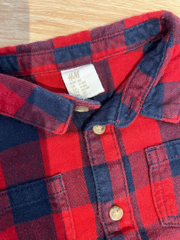 Chemise manche longue à carreau rouge et bleu marine Très bon état Portée 1 seul fois Marque H&M Taille 4-6 mois (68cm)