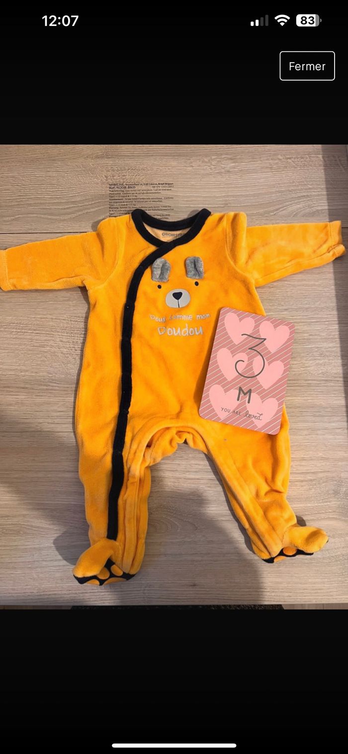 Pyjama chaud velours 3 mois