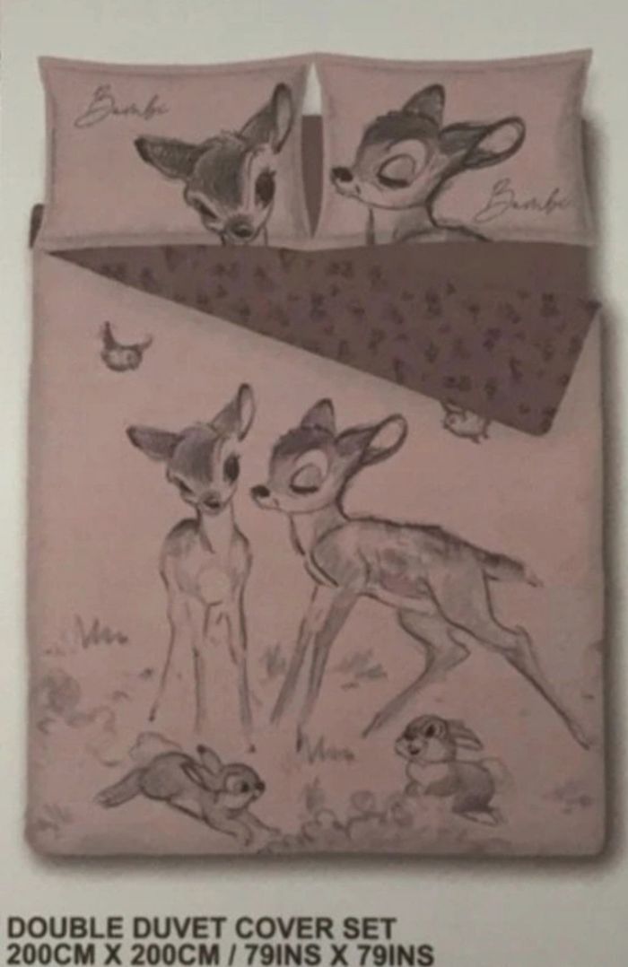 Etat neuf 2metres sur 2 avec deux oreillets carrés Walt disney Bambi rose et noir , double face marron chocolat et noir