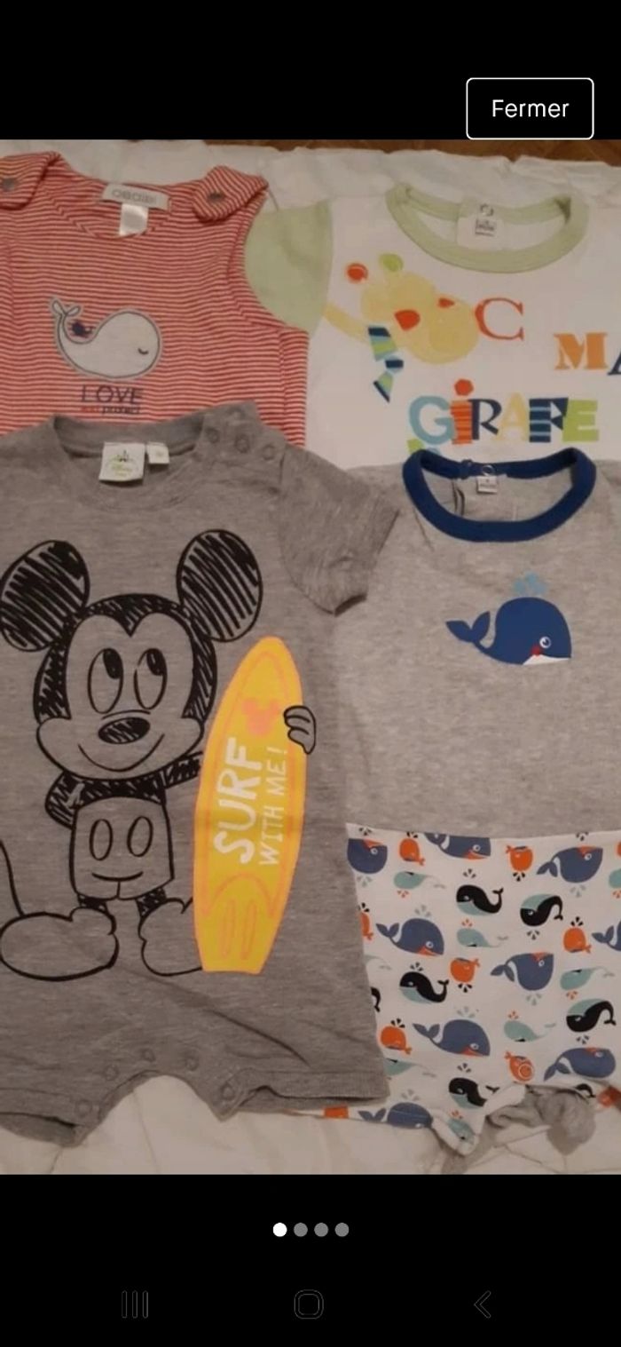 Lot de 4 barboteuses baleine girafe Mickey 3 mois - photo numéro 1