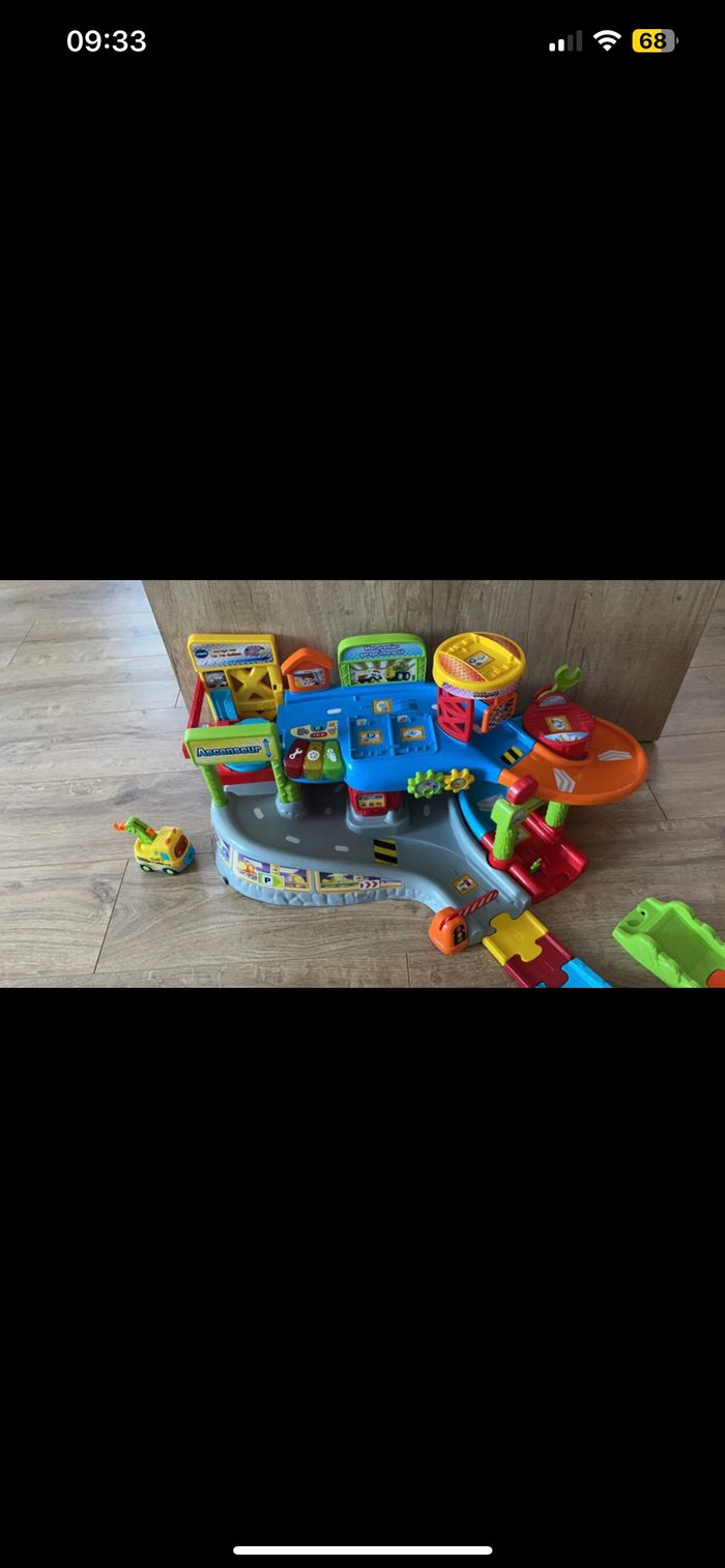 Mon premier garage Tut Tut bolides + voiture + extension en bon état, pile de la voiture à changer .