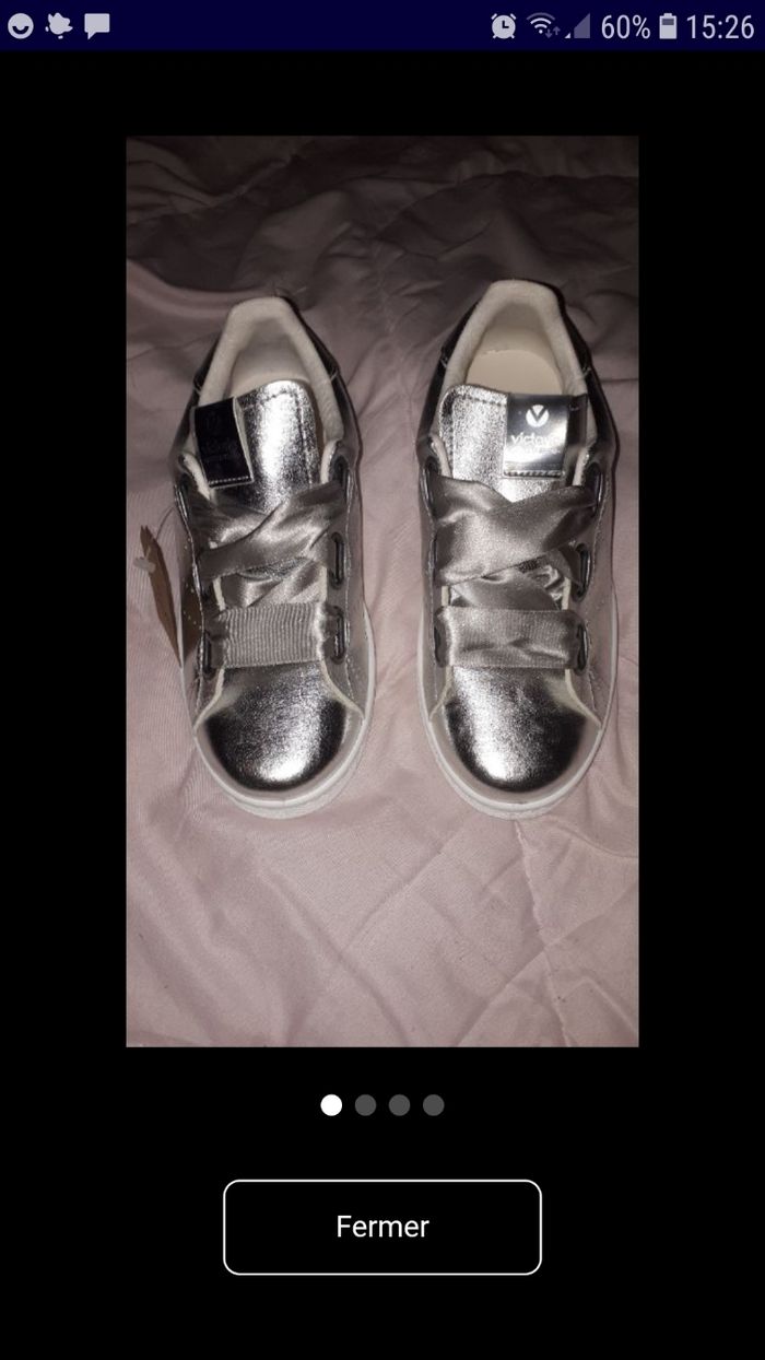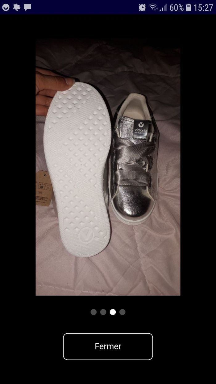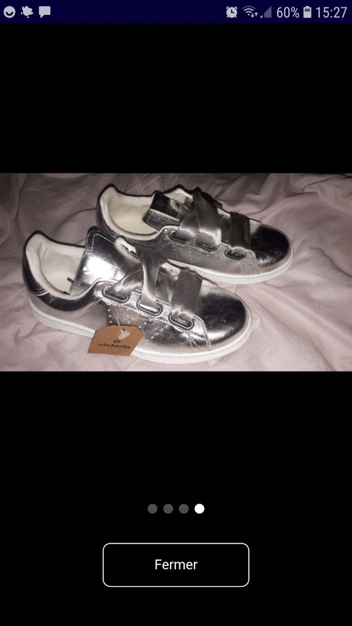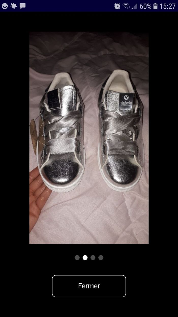 Basket de ville argenté. Lacet satin ruban. Pointure 36. Neuve avec étiquette. Marque victoria. Convient au adolescents ou à la femme.