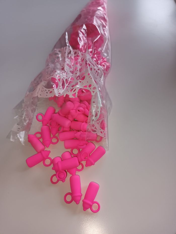 Sachzt de Biberon rose qu'on peut pendre à une chaîne ou autre - photo numéro 1