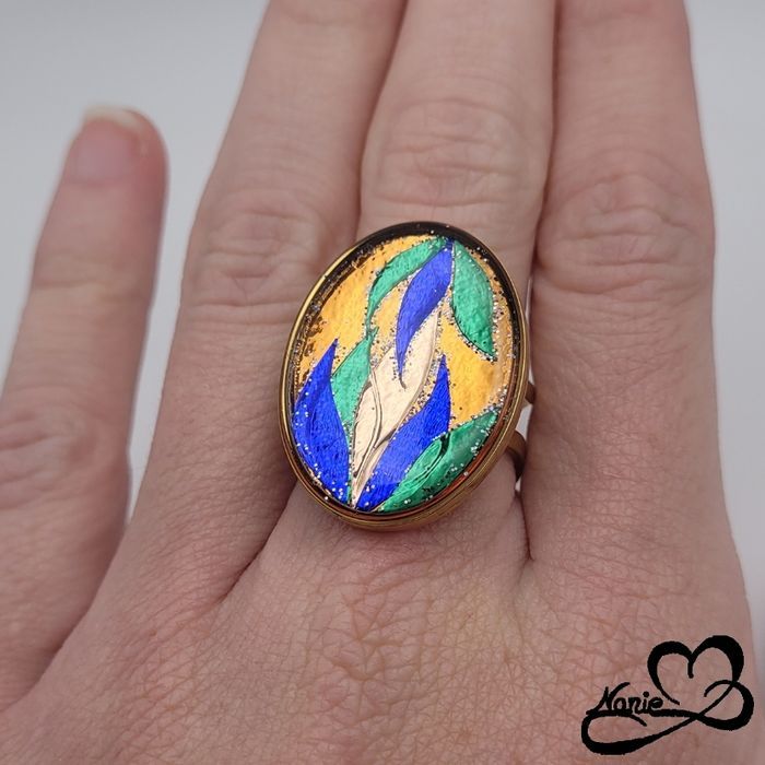 Bague ajustable ovale dorée verte, bleue et orange - photo numéro 1