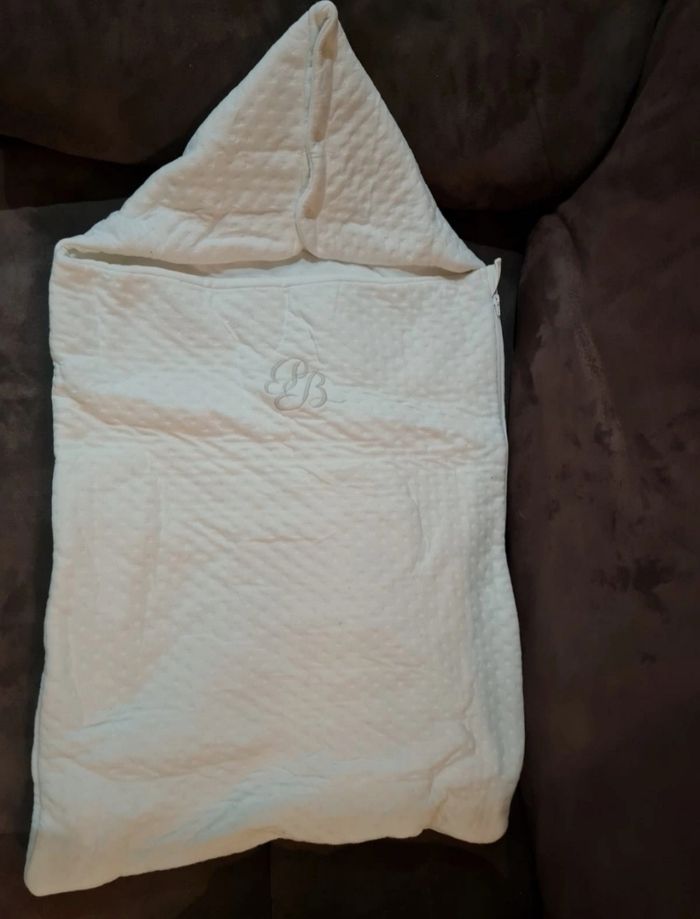Fils un peu effilés au dos (voir dernière photo) sinon en très bon état. Idéal pour mettre dans le cosy avec le passage pour la ceinture