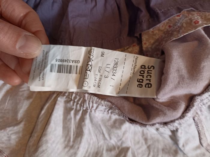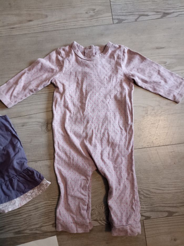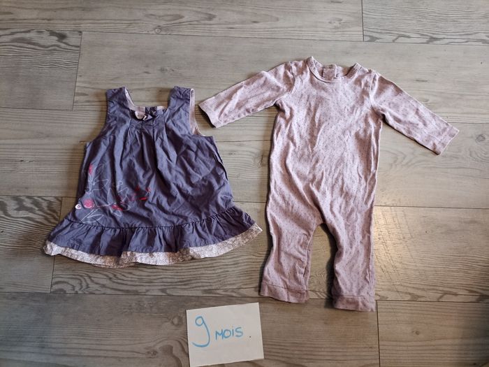Très belle ensemble avec une robe et un haut et bas sans pied style dors bien avec pression dans le dos. Très pratique par exemple pour le dodo et hop la robe et bébé est habillée. Ou juste avec la robe pour les jours plus chaud. J'ai d'autre article en 9 12 mois dans mon dressing au plaisir