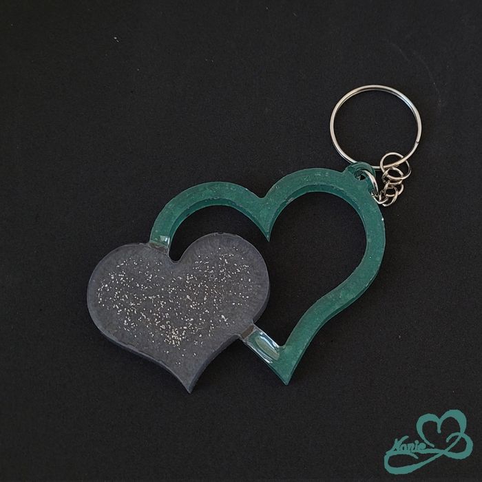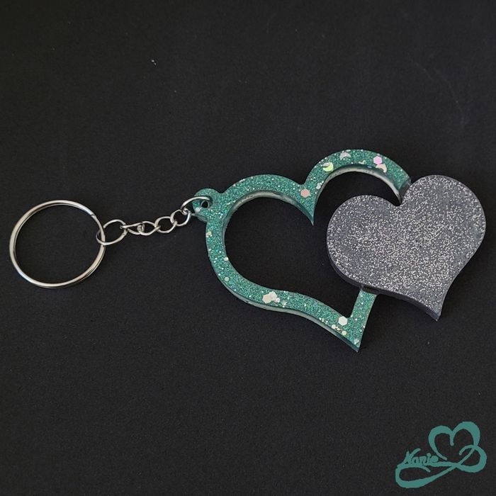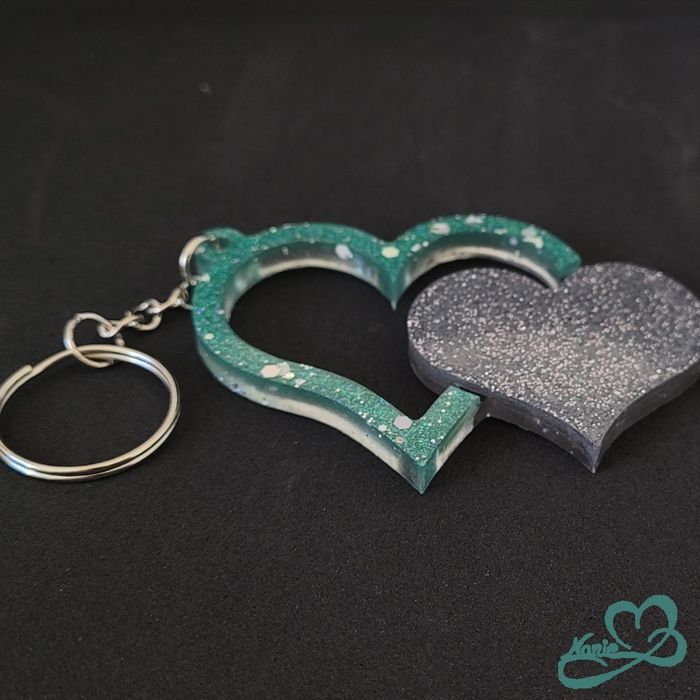 Porte clef en résine cœurs gris et vert !! - photo numéro 2