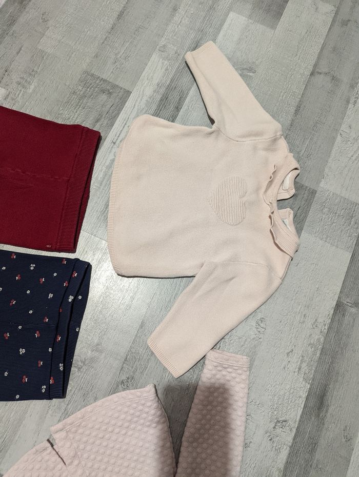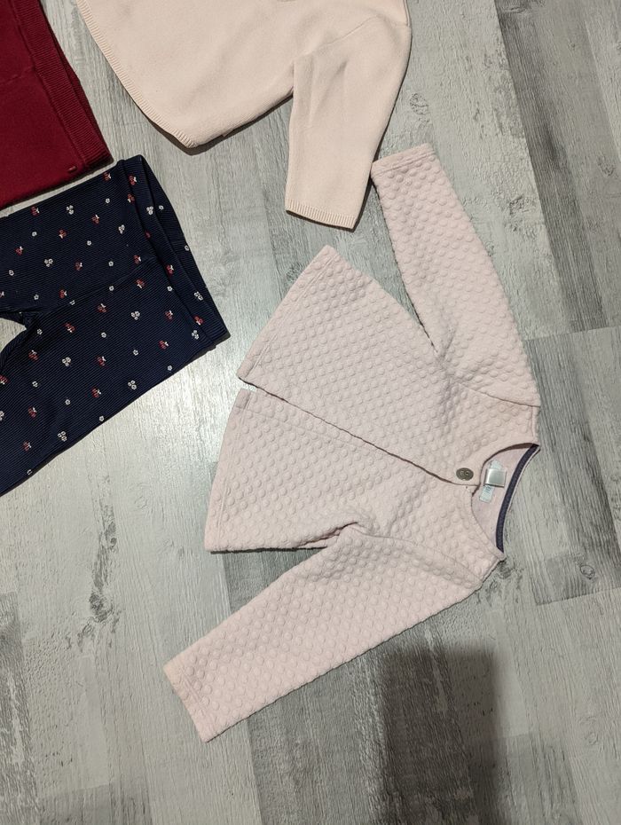 Lot de 2 pantalons, une veste et un pull Obaibi 18 mois bon état , Le nom de ma fille est écrit sur l'étiquette intérieure de la veste.