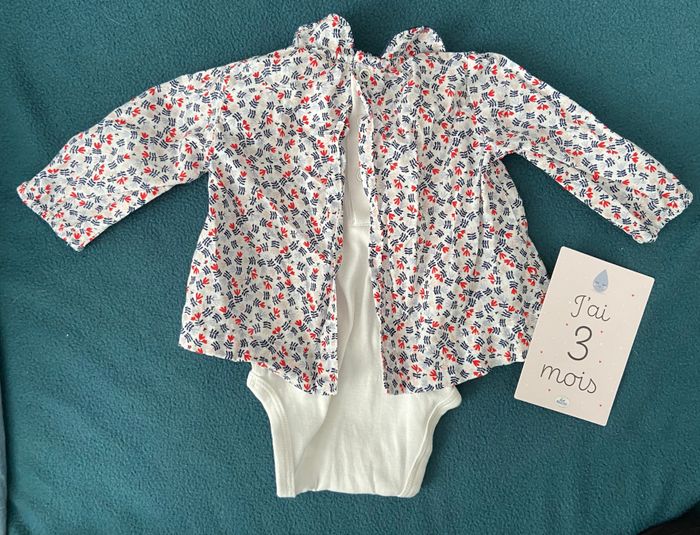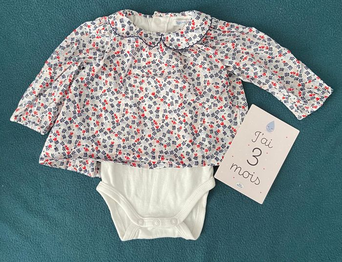 Chemise Fleurie Boutchou Body intégré Taille 3 mois Très bon état