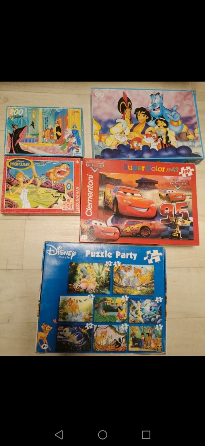 Lot de puzzle disney Aladdin cars hercule Bambi fée clochette Il manque 1 puzzle livre de la jungle dans la grande boîte Le reste est complets Boîte un peu abîmé