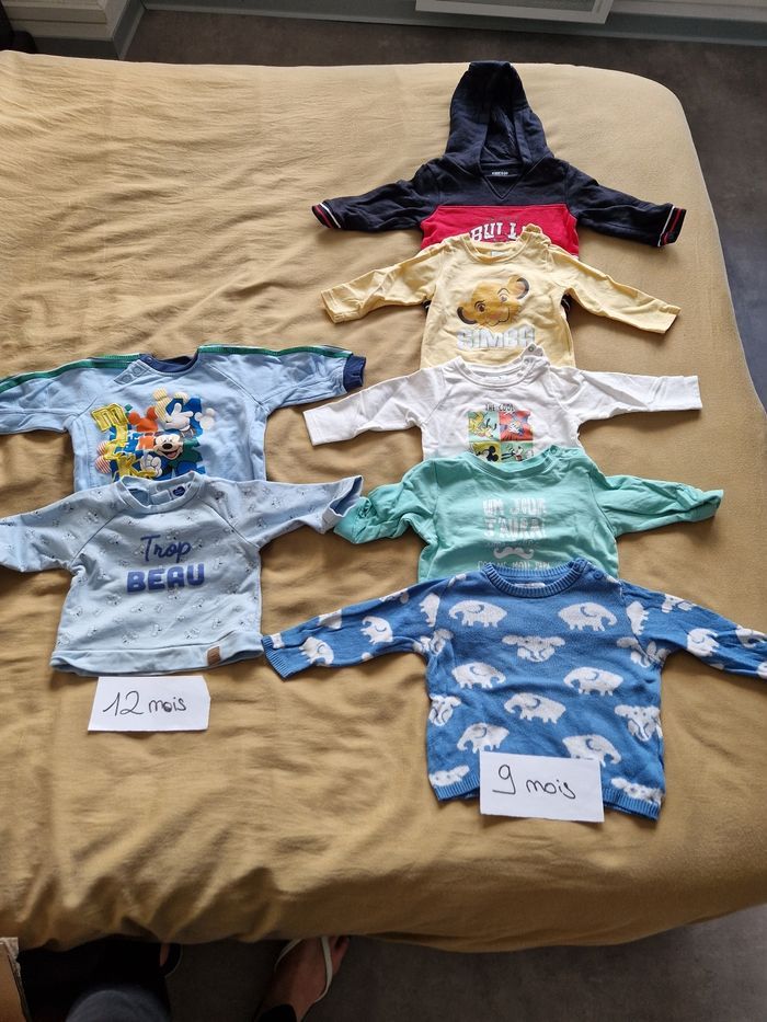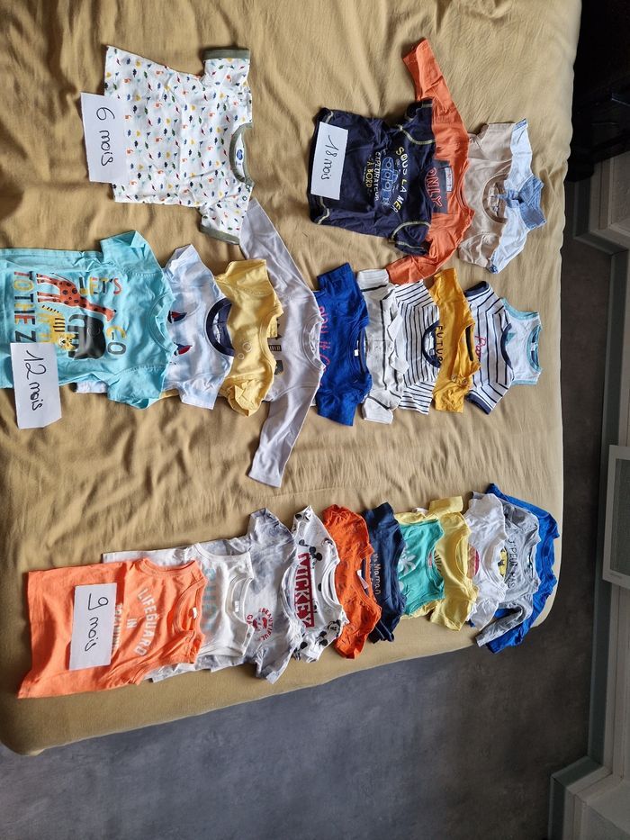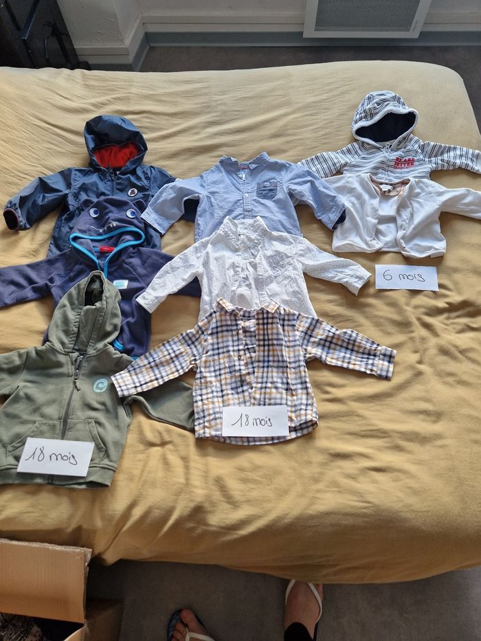 Je vends des habits garçon de la taille 6 à 18 mois. 130 articles au totale. Possibilité d'acheter par articles, en lot ou en totalité. Il y aura une réduction par lot d'habits et des habits offerts (Ex: 10 habits = 10 euros- 20%=8 € + 1 ou 2 vêtements offerts ( tout dépend le lot ))