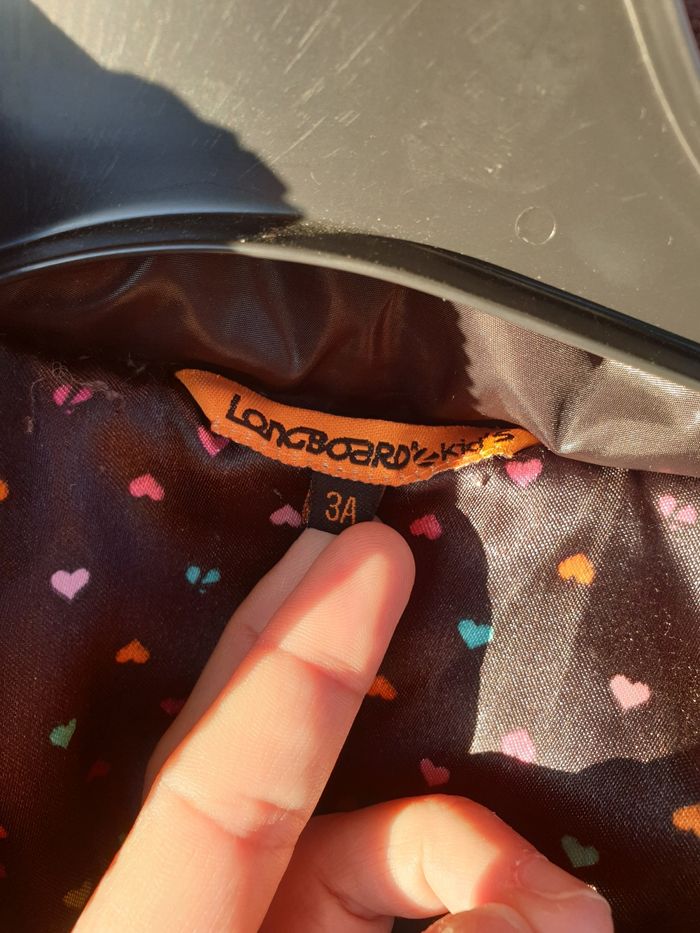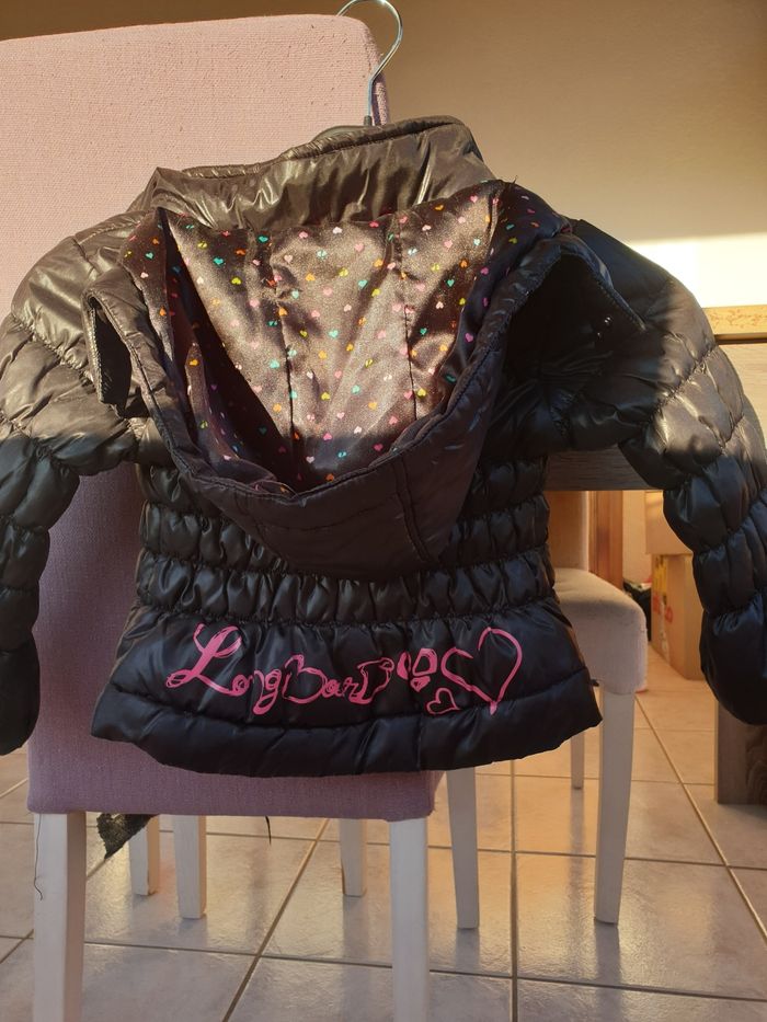 Manteau 3 ans, avec capuche, noir, marque longboard, bon etat, à peine efiloché sur une bordure.