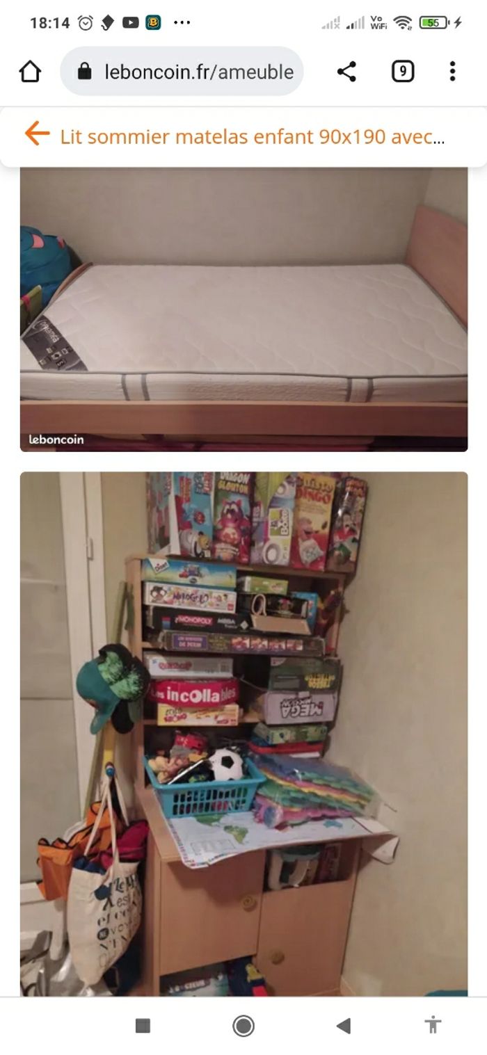 Vend lit bébé et table a langer et évolue en lit une personne et Bureau et matelas.