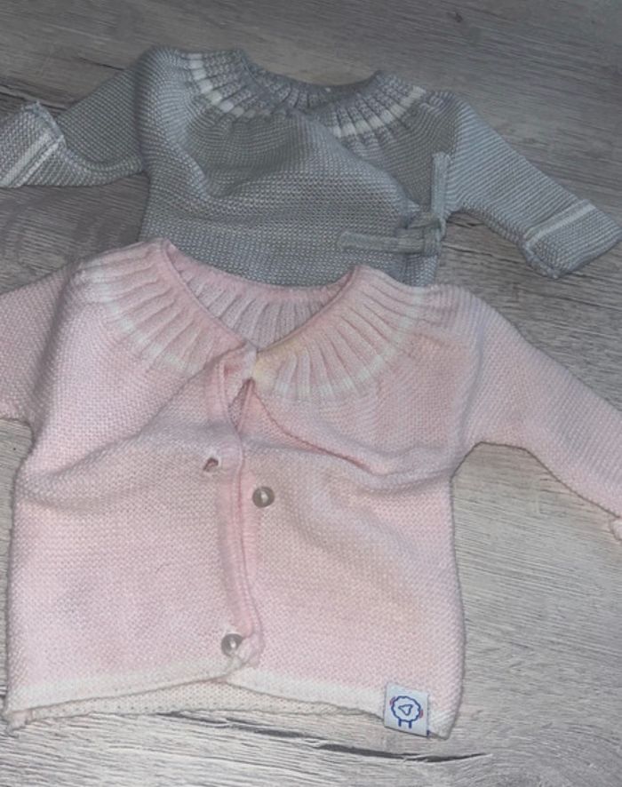 Lot gilet un rose un gris 0M 44-50cm