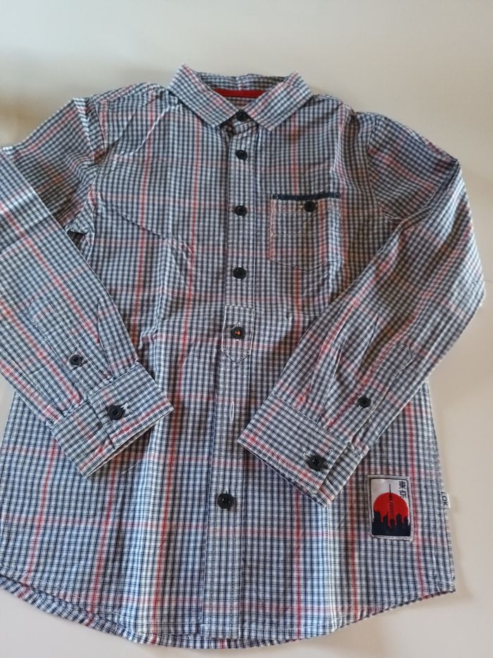 Chemise à carreaux bleu et rouge ,manches longues . Visuel Tokyo dans le dos. Neuve.