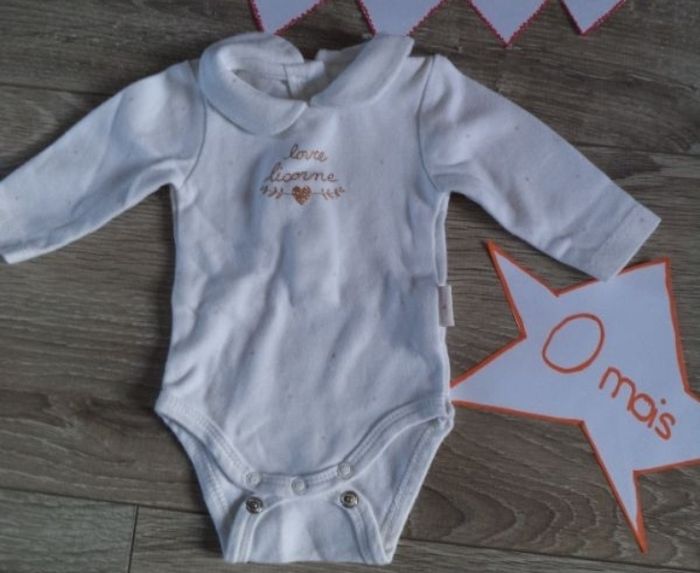Body 0 mois 46 cm naissance Love licorne Blanc avec col