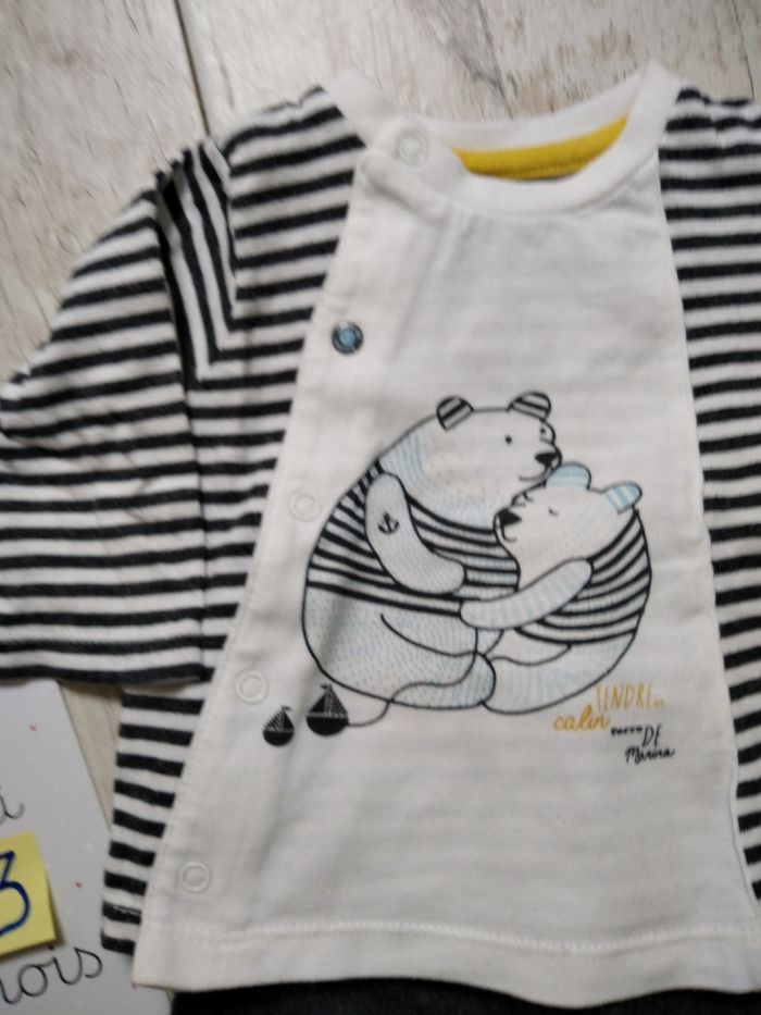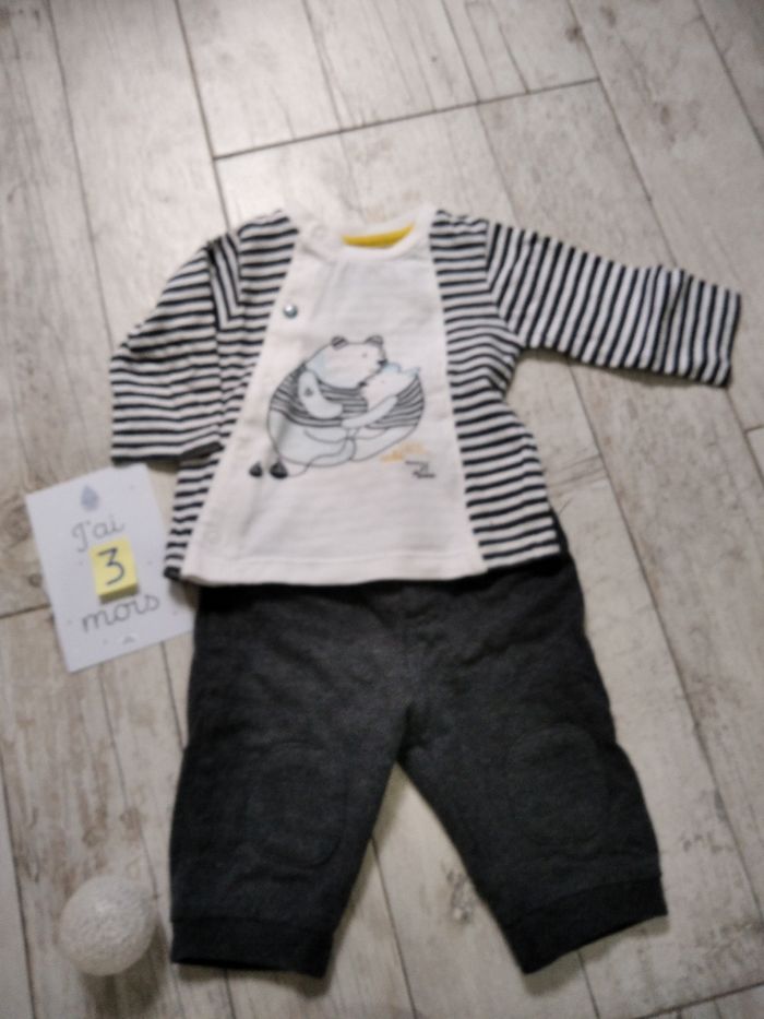 Comme neuf très peu porté Très jolie ensemble gris et blanc Marque terre de marin Taille 3 mois