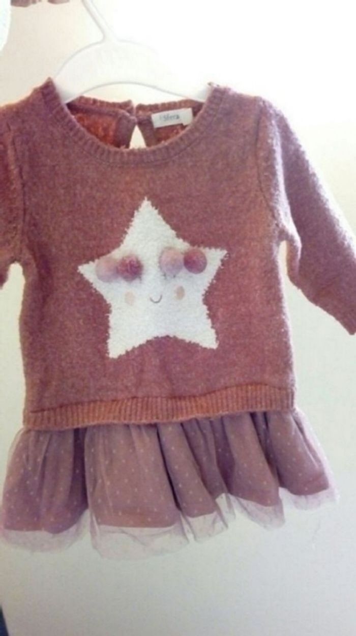 Jolie robe hiver, assez chaude, taille 3-6 mois (62-68 cm). Marque Sfera. Très bon état.