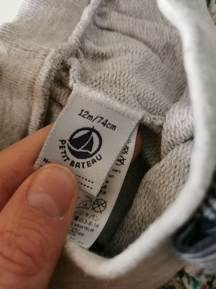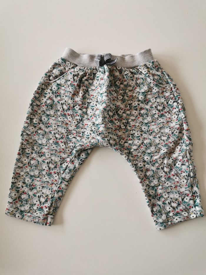 Panatlon bébé gris avec des fleurs sa coupe est parfaite pour bébé en plein développement de la motricité. C'est une taille 12 mois de la marque petit bateau. Il est en excellent état proche du neuf.