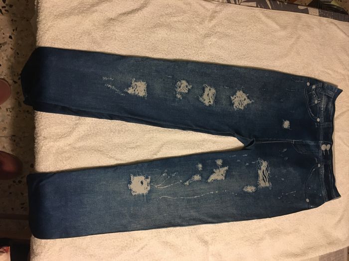 En très bon état matière qui s étend. La taille est notée L/XL couleur jean avec motif
