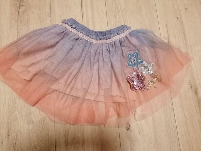 T-shirt taille 3/4ans Jupe en tulle 7/8ans (taille très très petite. je dirais 4ans ) taille ajustable avec élastique. En parfait état.