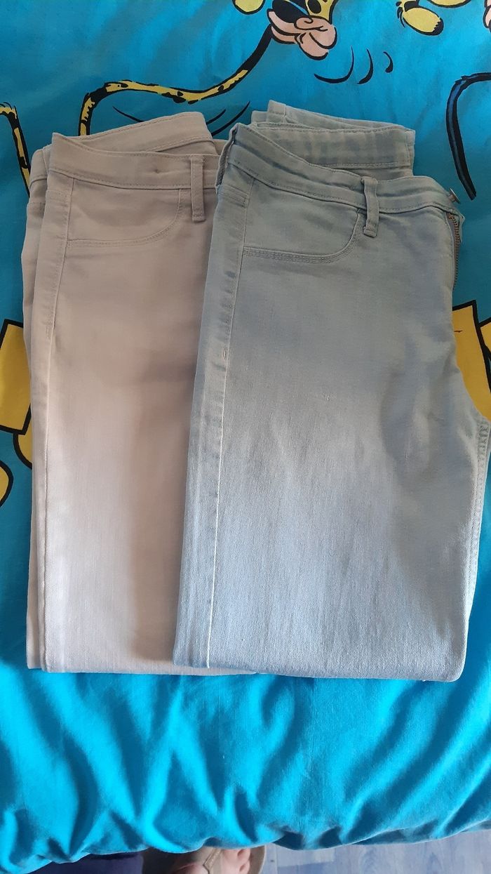 2 pantalons assez légers skinny fit & denim en très bon état une infime trace sur le gris voir derrière photo