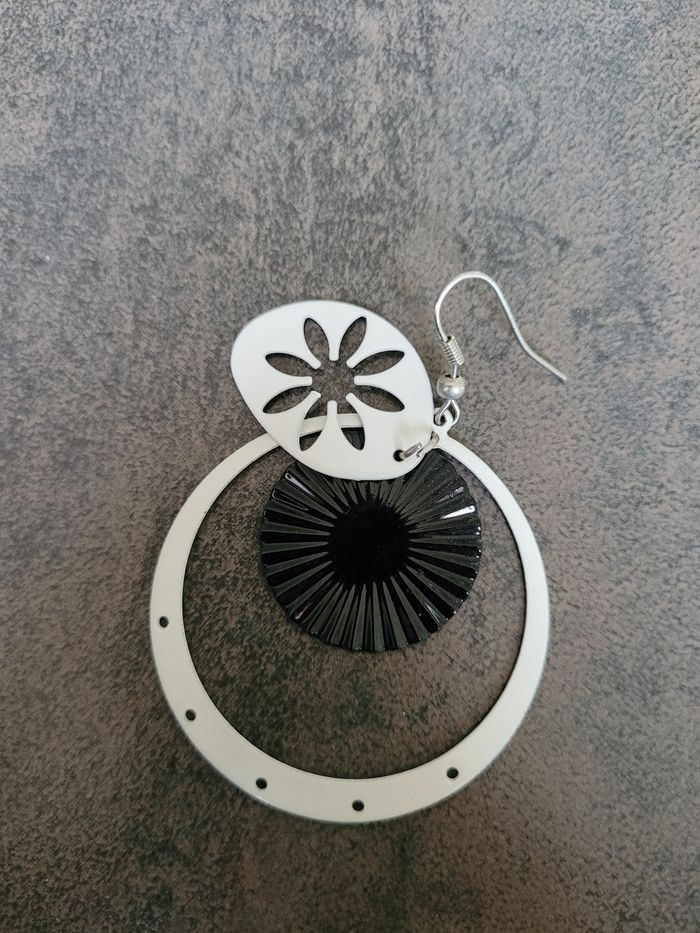 Vends boucles d'oreilles noires et blanches. Hauteur totale 6,5 cm.