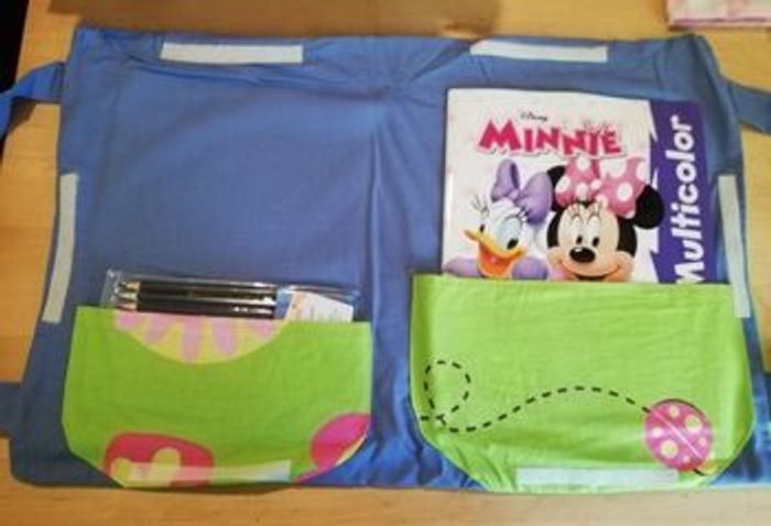 Sacoche pochette de coloriage. Fermeture à scratch Avec cahier de coloriage et crayon de couleur inclus.