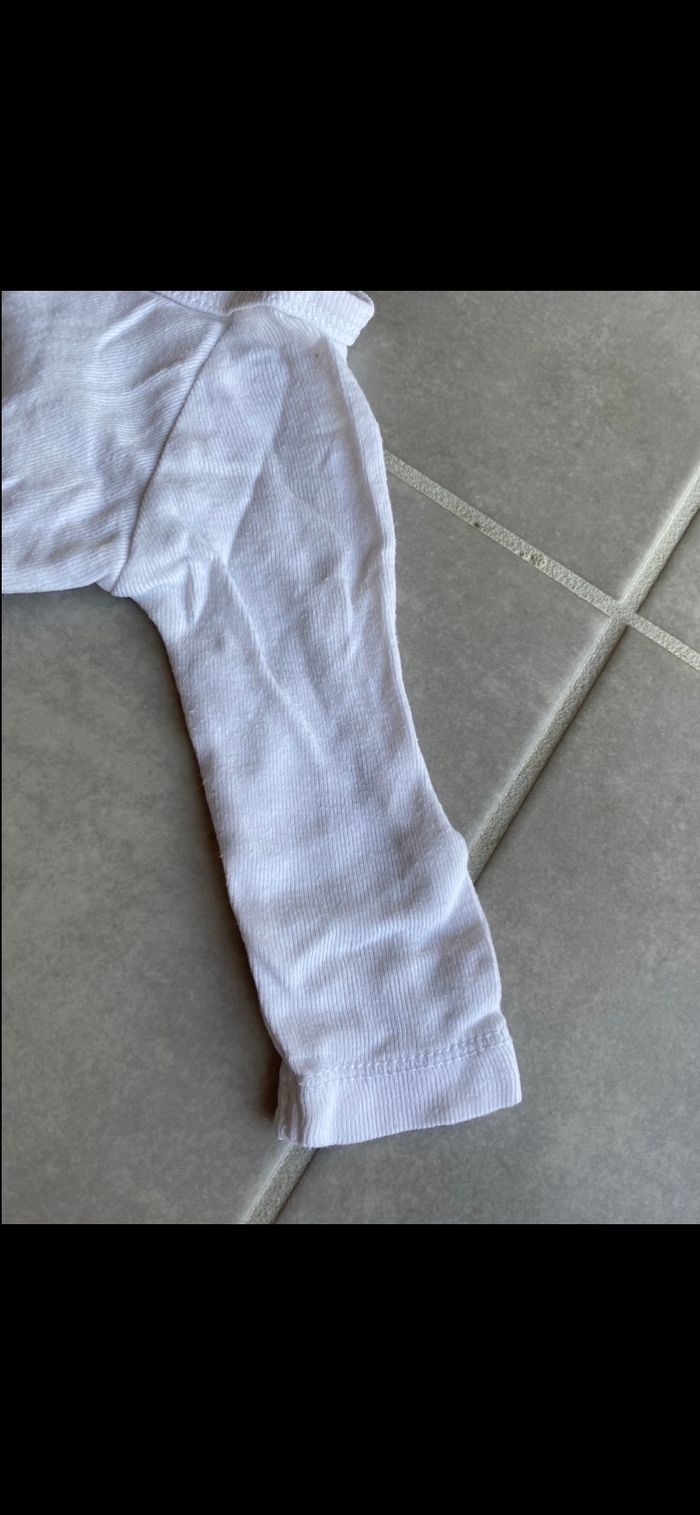 Porté, il a jauni par endroit doit partir au détachant. N’hésitez pas à me suivre car encore beaucoup de vêtements fille, des chaussures en cuir, des chaussons… (du 1 mois au 8 ans), des vêtements garçon (du 1 au 6 mois pour le moment ). Maison non-fumeurs et sans animaux même si je les adore. Il n'y aura pas de poils ou d'odeur désagréable. Vous recherchez quelques choses, demandez moi. Je réponds très rapidement. Bon shopping 😊