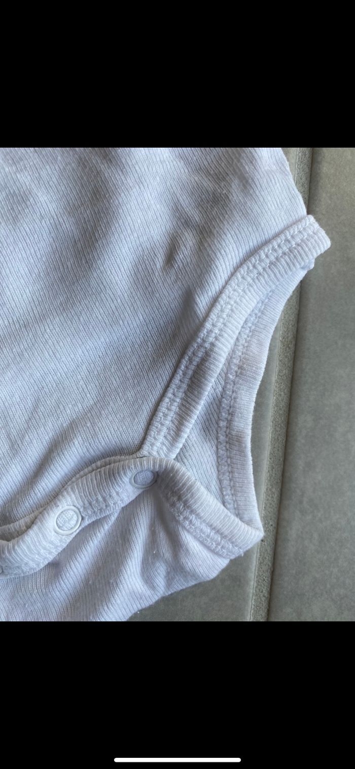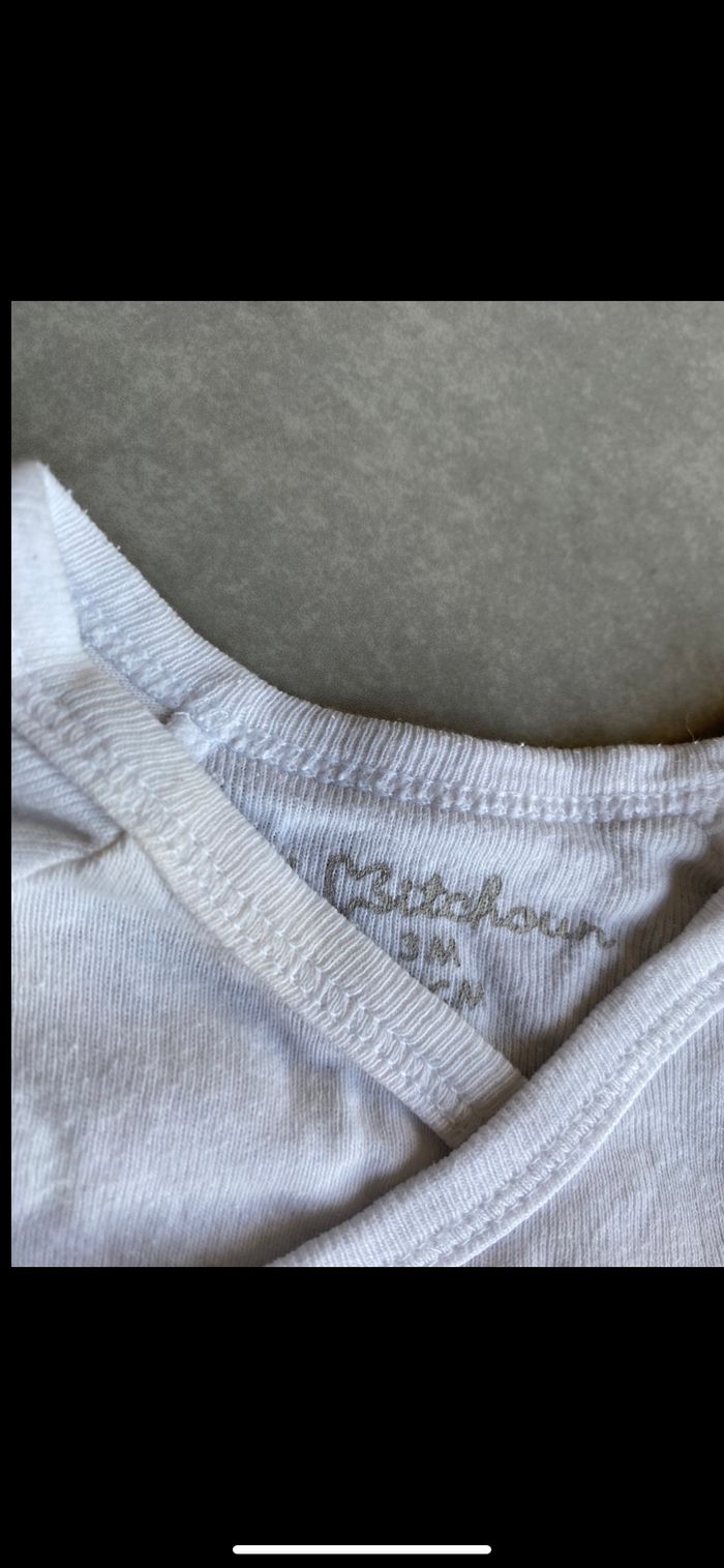 Porté, jauni au niveau du col, doit partir au détachant. N’hésitez pas à me suivre car encore beaucoup de vêtements fille, des chaussures en cuir, des chaussons… (du 1 mois au 8 ans), des vêtements garçon (du 1 au 6 mois pour le moment ). Maison non-fumeurs et sans animaux même si je les adore. Il n'y aura pas de poils ou d'odeur désagréable. Vous recherchez quelques choses, demandez moi. Je réponds très rapidement. Bon shopping 😊