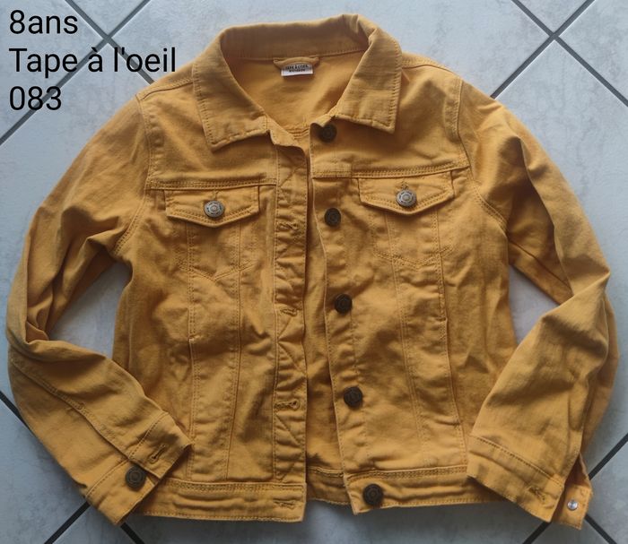 En parfait état , veste en jeans de couleur moutarde provenant de tape a l'oeil de taille 8ans