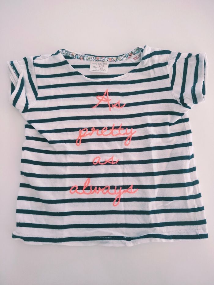Lot comprenant 6 t-shirts En très bon état 9-12 mois kiabi Marques : Zara, Kiabi, kimbaloo, boite a malices