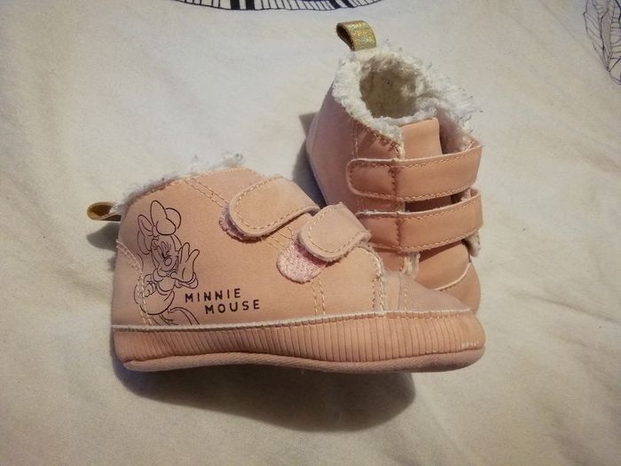 🌺✨ Chaussures souples 🌺✨ Idéales pour laisser les petous de bébé au chaud ou les tout premiers pas de bébé 🌺✨ Fourrées 🌺✨ Thème "Minnie" 🌺✨ Marque Disney by Kiabi 🌺✨ Taille 9-12 mois 🌺✨ Bon état général (voir les dernières photos, légèrement abîmées) mais ne gêne en aucun cas leur utilisation