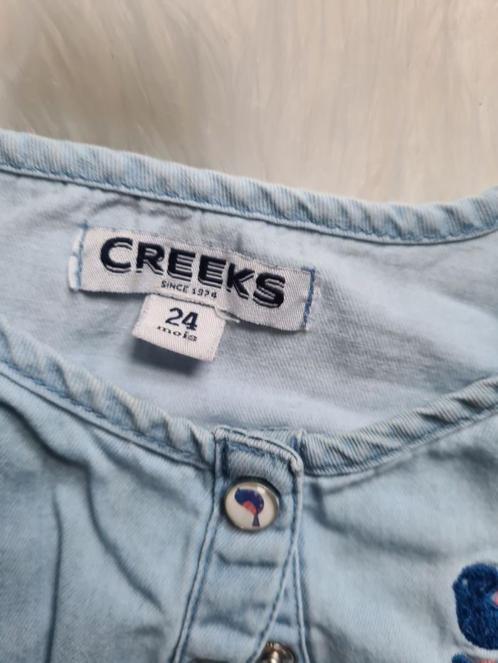 Robe en jeans Bleu avec étoile et petite fleur brodé Creeks 24mois