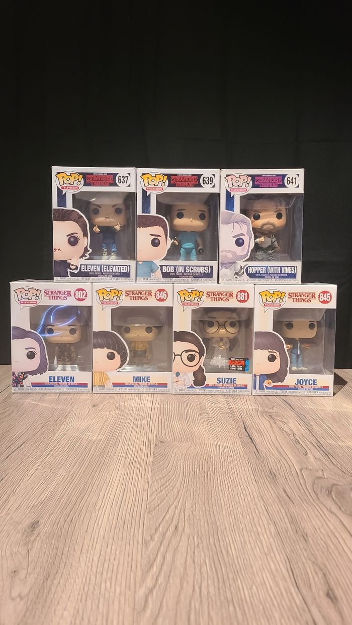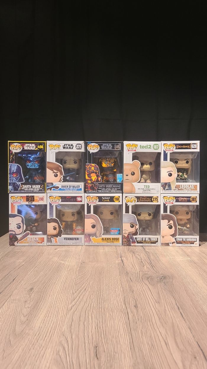 Vends Funko pop "télévision" (film, série). Voici la liste, pour prix et photos envoyez moi un message ! ✌️ james gordon - 75 Wonder woman - 385 Harley Quinn - 97 Huntress - 305 Silk - 1064 Black Widow - 454 Iron Spider - 574 spider gwen unhooded - 153 Captain America - 125 captain marvel - 425 goose flerken (gitd) - 445 captain marvel (gitd) - 444 Maria Rambeau - 430 Drax - 200 Groot - 202 Spider Man 2099 - 1059 Wong - 1001 newt scamander (chase) - 14 Conan the Barbarian - 381 Legolas - 628 Ghost of the will turner - 275 Alexis Rose - 1169 Anakin Skywalker - 271 Darth Vader - 456 Darth Vader (Mustafar) - 515 joyce - 845 mike - 846 eleven (elevated) - 637 bob (in scrubs) - 639 Suzie - 881 Hopper (with vines) - 641 Eleven - 802 Negan (blood) - 390 yennefer - 1184 Ted - 187