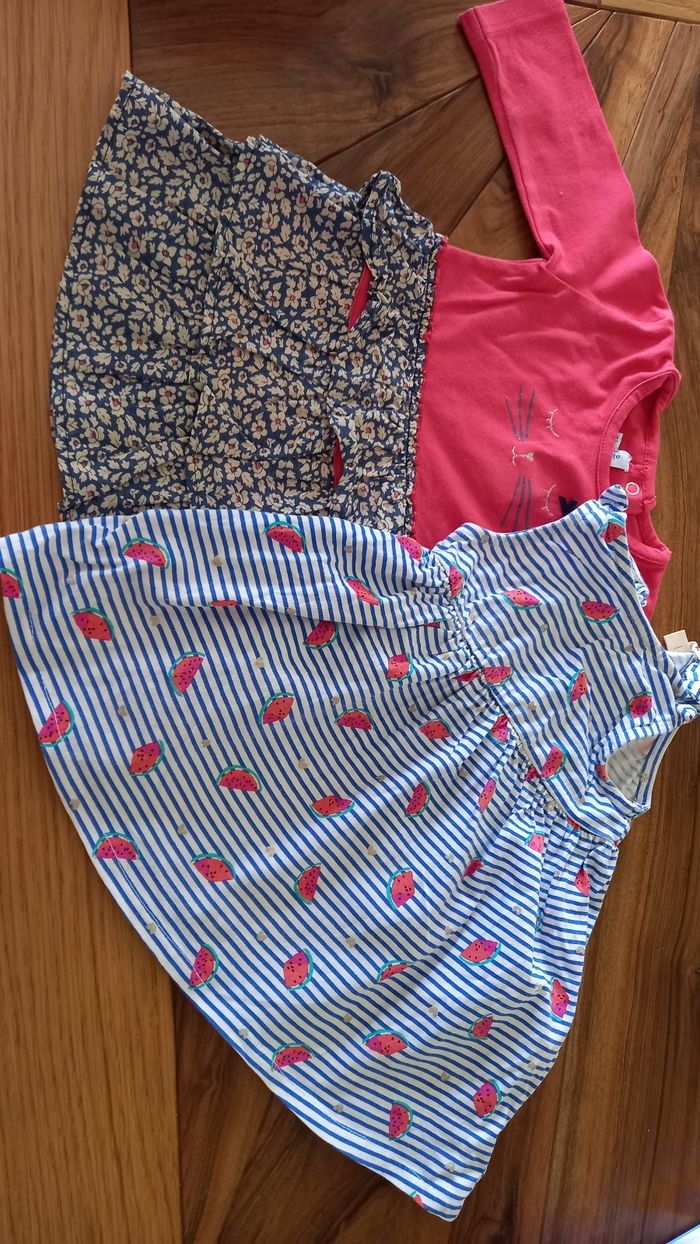2 robes bebe filles La bleu : du pareil au même La rose et bleu : absorba