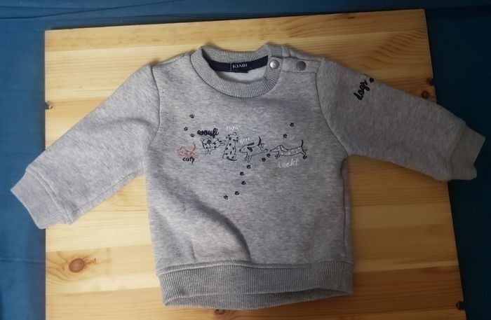 Bel ensemble (3) jogging garçon 3 mois composé de : 1 pantalon jogging Kiabi 1 sous pull Kiabi 1 pull Kiabi En très bon état