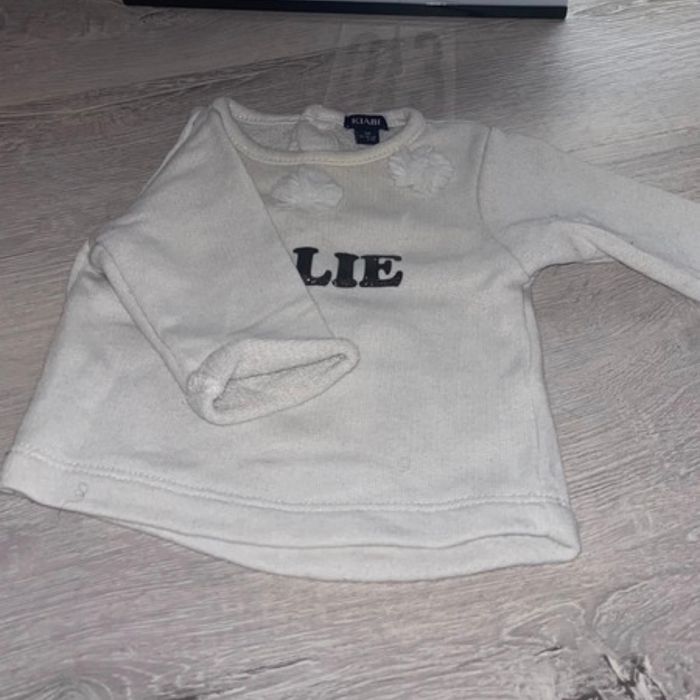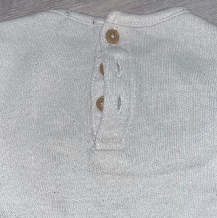 Pull blanc très bon état kiabi 1 mois 50-56cm ouverture a l’arrière (3boutons)