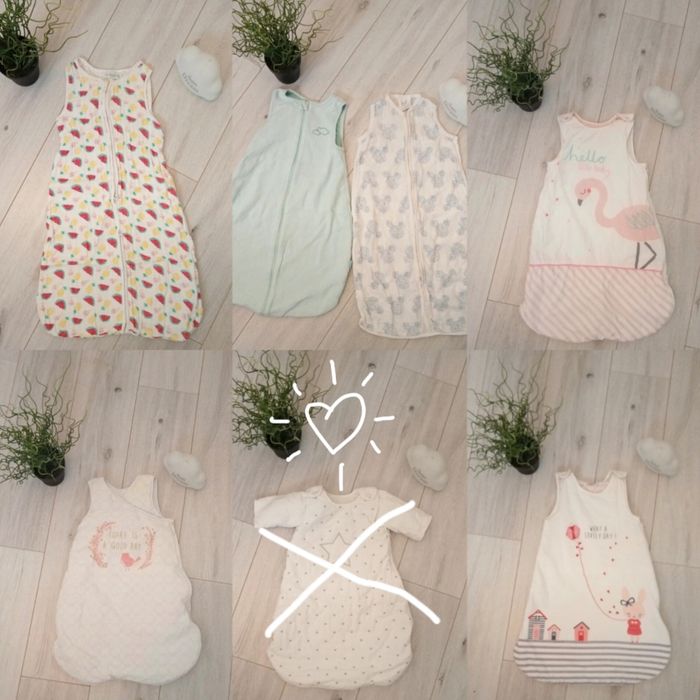 3 légères ( dont 1 qui fait combi) 3 chaudes 3-6 mois Toutes marques : Vertbaudet, Kiabi, orchestra, Aden et Anaïs