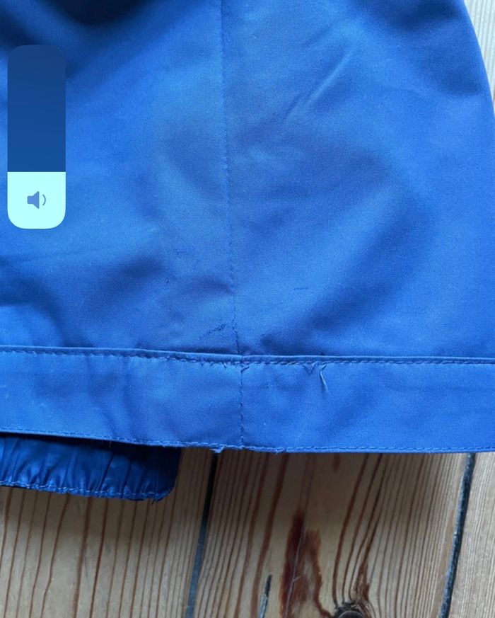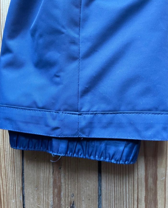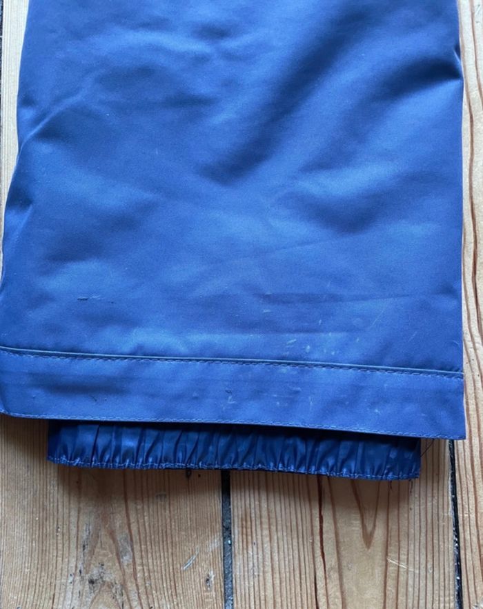 Pantalon porté, quelques traces d’usure visibles sur les photos. La couleur est un bleu violacé. Je vends également une veste